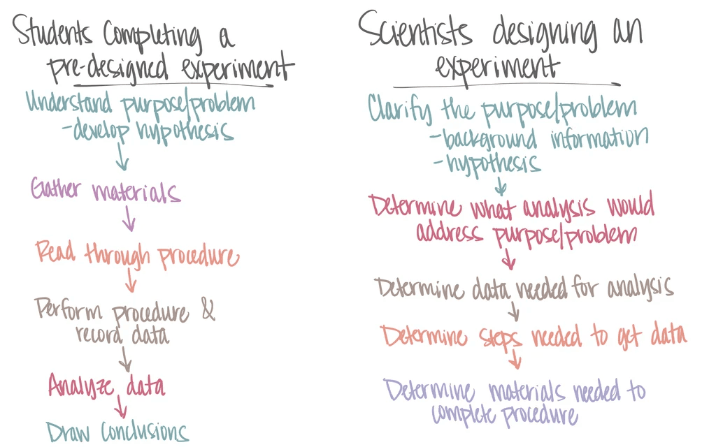 But every time I'd ask them to design an experiment, they'd write the purpose and a hypothesis if appropriate. (Contrary to the myth of "The Scientific Method"—not everything is hypothesis-driven and not everything follows the same five steps.)